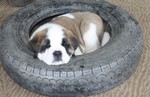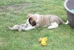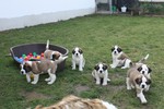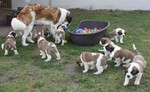 ...essen ,Mama Alessia beobachtet ob auch alle was bekommen und ob es richtig gemacht wird und ob vielleicht für sie was übrig bleibt. Zuvor wird aber von den Welpen geschaut ob der Nachbar noch etwas in der Schüssel hat